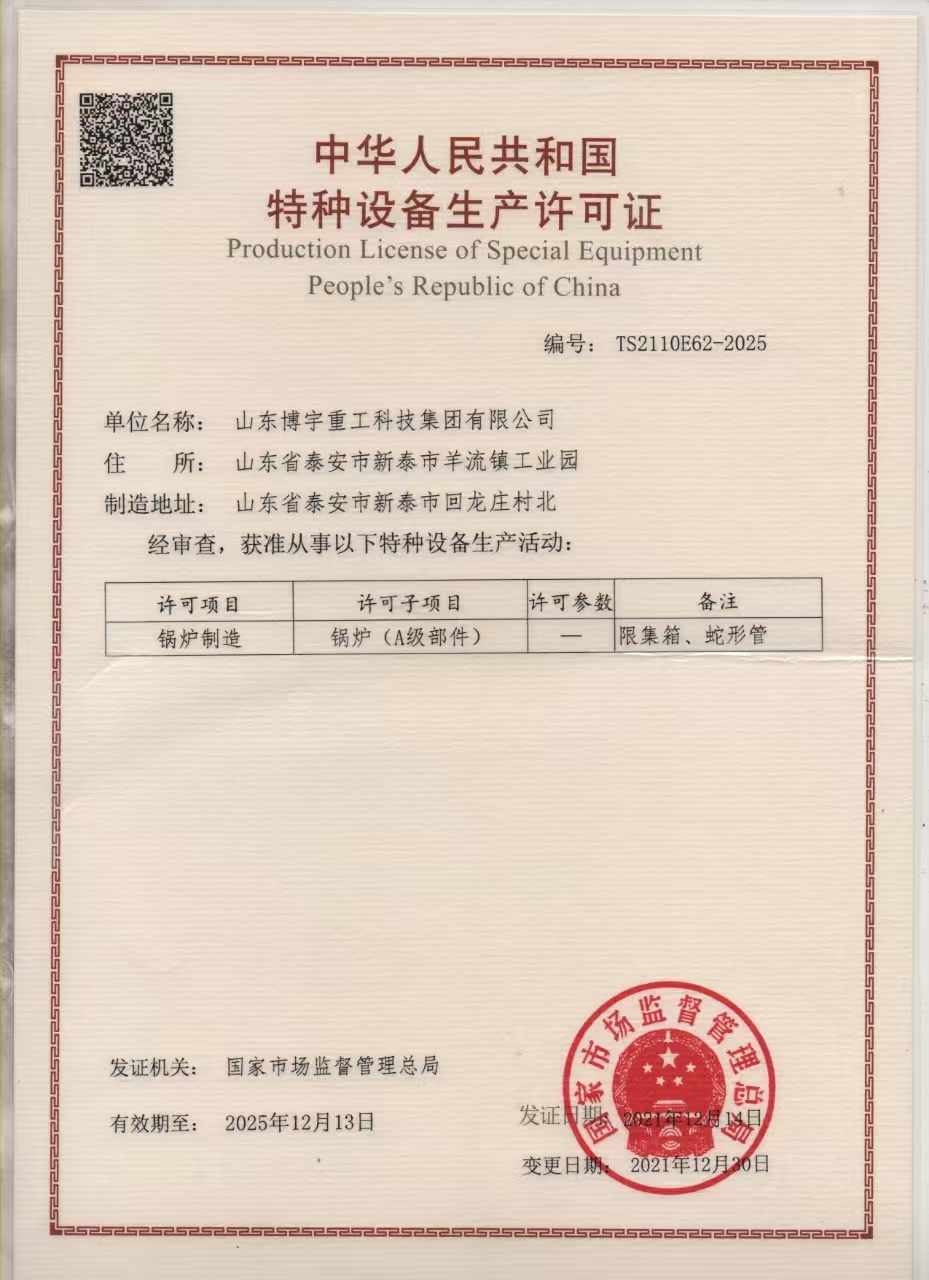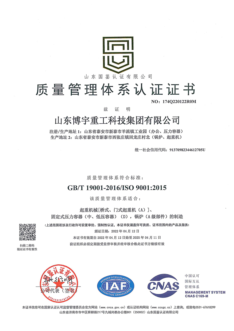 山東博宇重工科技有限公司,坐落在五岳之尊、風(fēng)景秀麗的泰山腳下,公司占地面積160000平方米,建筑面積100000平方米,擁有固定資產(chǎn)陸仟壹佰陸拾萬元整,現(xiàn)有職工760人,其中工程技術(shù)管理人員118人,副高職稱5人,初、中級(jí)職稱25人,公司獲得國家質(zhì)檢總局授予的A2類壓力容器制造許可證,A級(jí)鍋爐部件資質(zhì),起重機(jī)生產(chǎn)制造許可證,且質(zhì)量管理通過了ISO9001:2008質(zhì)量認(rèn)證。